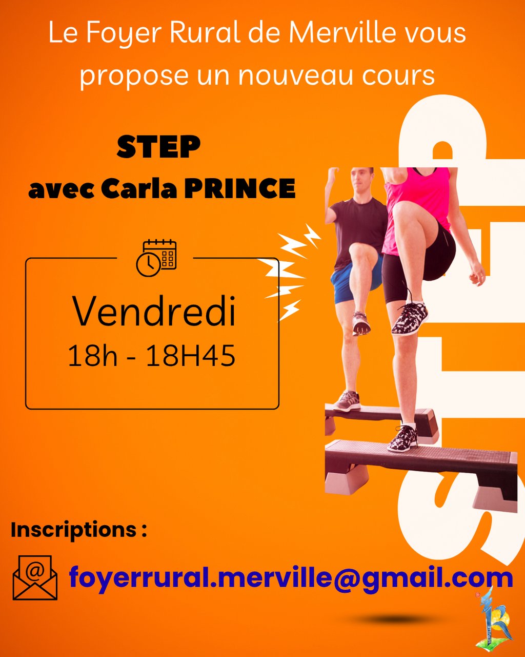 Le Foyer Rural de Merville vous propose une nouvelle activité cette année ! Tous les vendredis, Carla PRINCE proposera un cours de STEP salle Julien Naudin de 18h à 18h45.