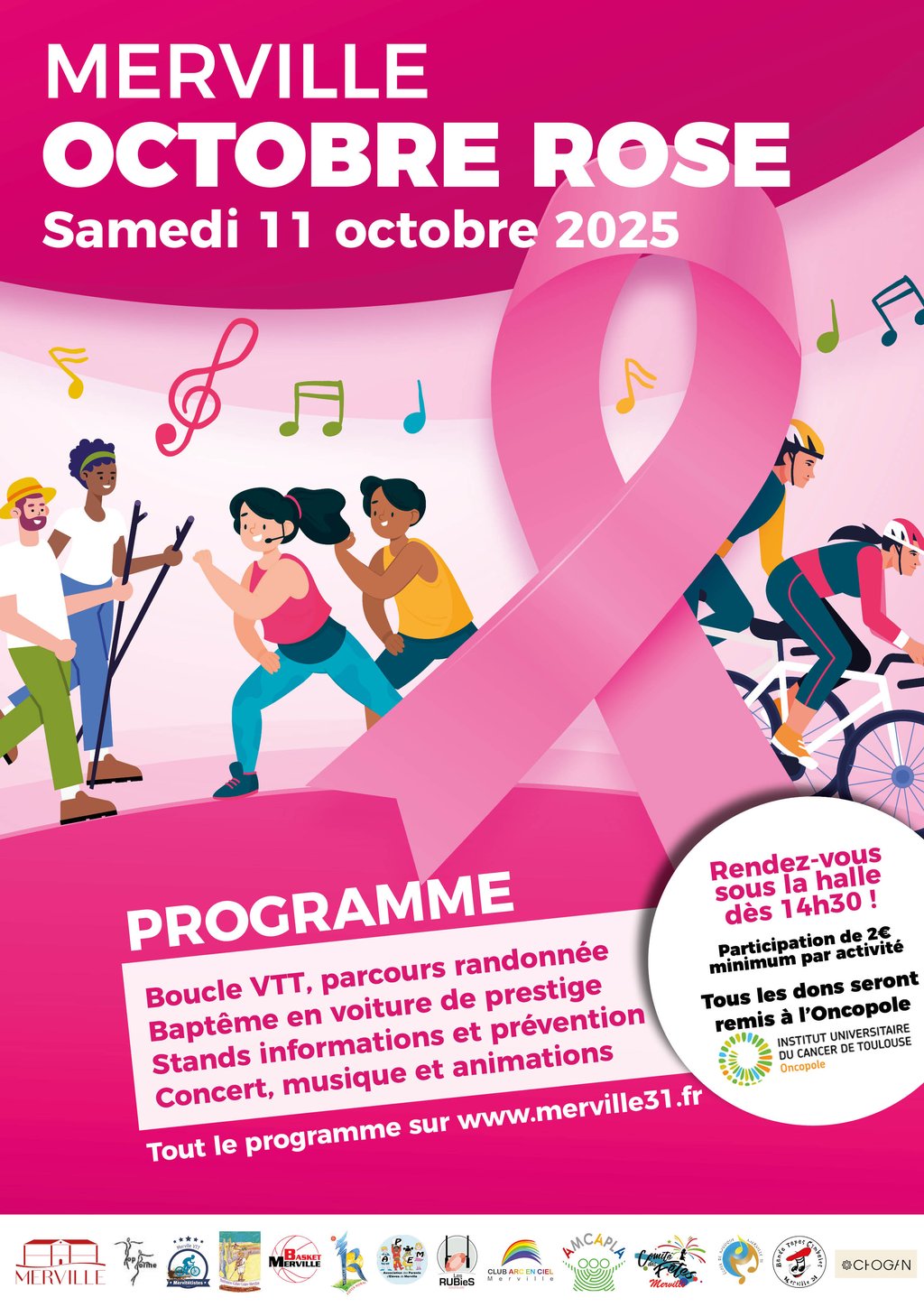 Après une belle réussite l'année dernière (collecte de 3 100 euros), une 3e édition d'Octobre Rose sera organisée à Merville ! Rendez-vous sous la halle le 11 octobre pour cet événement de sensibilisation et de lutte contre le cancer du sein. L'ensemble des bénéfices sera remis à l'Oncopole de Toulouse.