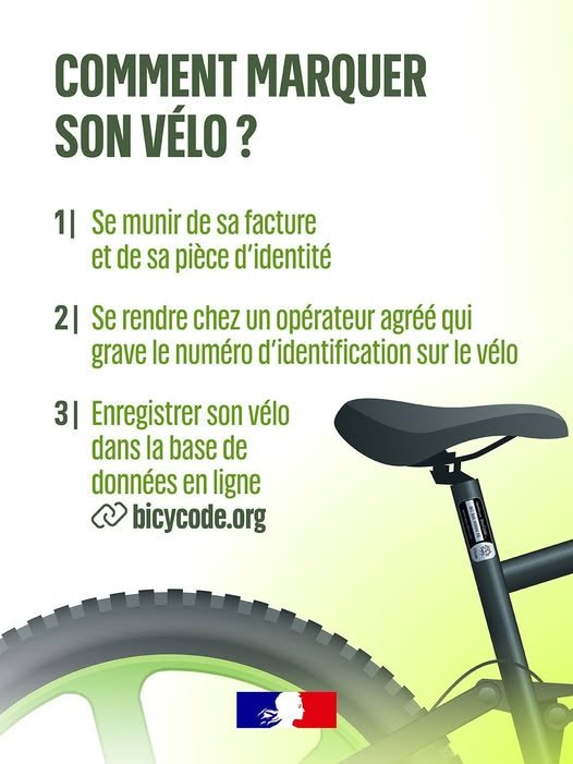 Obligatoire pour tout achat de vélo neuf, le marquage permet de faciliter la restitution à son propriétaire en cas de vol ou de perte.