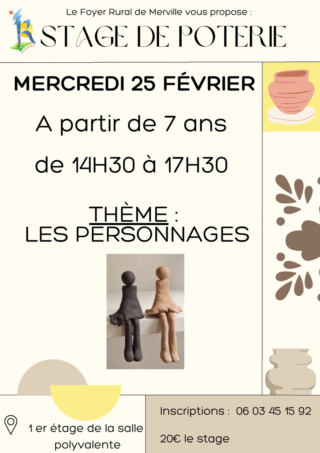 Un stage de poterie sera proposé pour les enfants à partir de 7 ans, le 25 février.